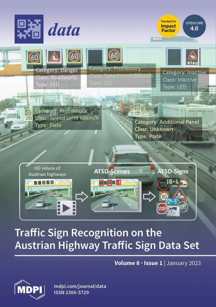 Das Paper über Verkehrszeichendetektion und -klassifikation auf dem österreichischen Straßenverkehrszeichendatensatz aus dem 𝗣𝗿𝗼𝗷𝗲𝗸𝘁 𝗦𝗮𝗳𝗲𝗦𝗶𝗴𝗻 ziert das Cover des Fachjournals Data.