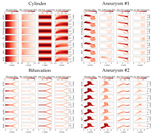 Im Vergleich zu konventionellen, numerischen Methoden der Strömungsmechanik bieten physics-informed neural networks, kurz PINNs (physikbasierte neuronale Netzwerke), Vorteile wie die Vermeidung von diskretisierten Simulationsgeometrien und die mögliche Integration von (Mess-)Daten in die Modellierung. Das Paper untersucht verschiedene Netzwerkarchitekturen bezüglich ihrer Performance und Genauigkeit im Vergleich zu numerischen Referenzsimulationen. Dabei wurden Blutflüsse sowohl durch einfache zylindrische Geometrien als auch komplexe Aneurysmen betrachtet. Es wurde festgestellt, dass fully-connected neural networks (vollständig verbundene Netzwerke) zwar eine attraktive Balance zwischen Trainingszeit und Genauigkeit bieten, jedoch komplexere Architekturen (wie z.B. die Deep Galerkin-Methode) genauere Ergebnisse erzielen können. Das Paper bietet damit eine quantitative Vergleichsübersicht über aktuell verfügbare Machine Learning-basierte Strömungsmodellierungen.