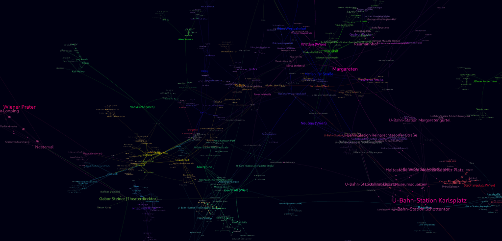 Bild: Vereinfachte Darstellung der News Datasphere zu „Wien“- ein dynamisches Netzwerk aus Nachrichten-Tags, (C) Newsadoo